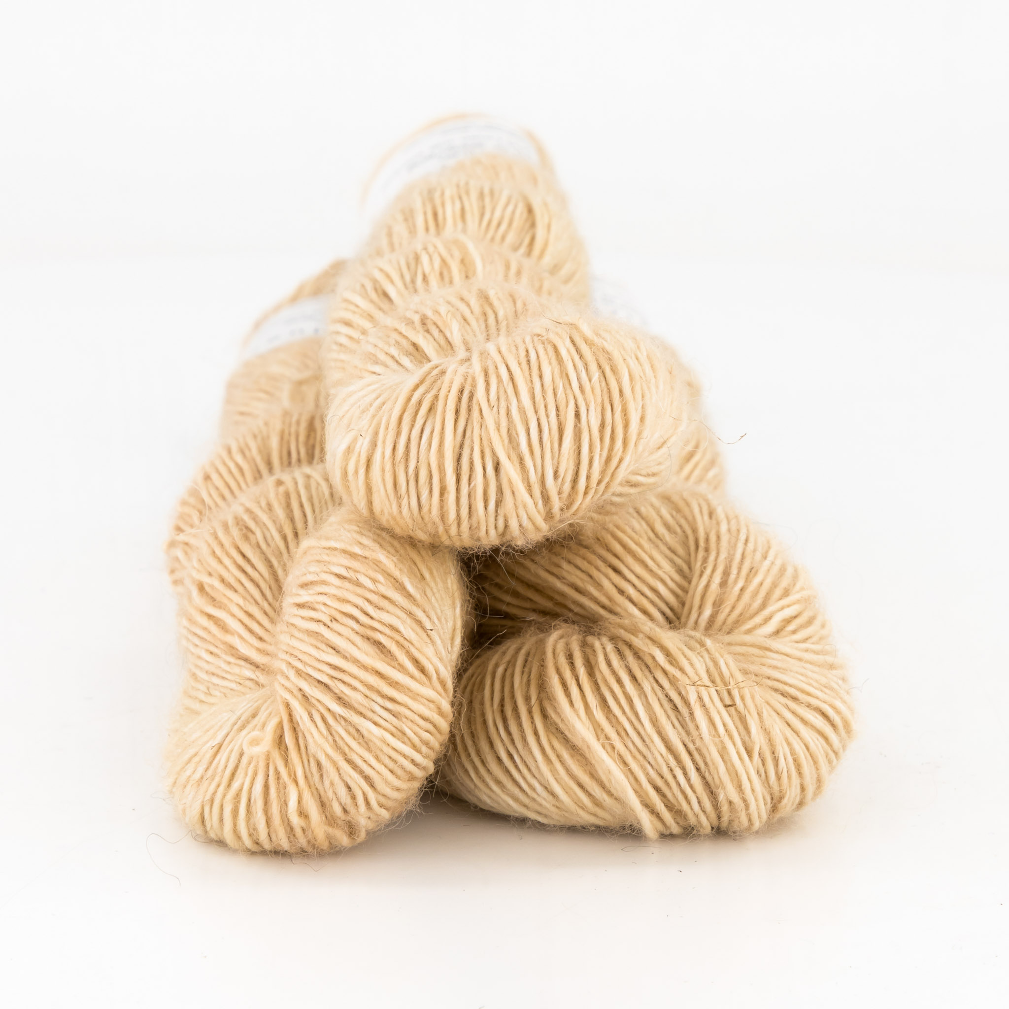 Our Merino Linen yarn blend is designed to be lightweight and perfect for everyday wear in a range of seasons. The large wool component gives a beautifully soft feel and the linen and viscose bring a lightness to the fibre. It’s a great choice for sweaters, shawls, and blankets.
